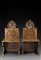 Coppia di panchetti in legno con schienale pannellato con parte superiore scolpita a volute, riccioli e valve di conchiglia. Sedute e montanti mossi. Sec. XVII (cm 70x133x44) (difetti e restauri)
