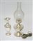 Lotto composto da una lampada in argento e vetro e un'anfora in argento....