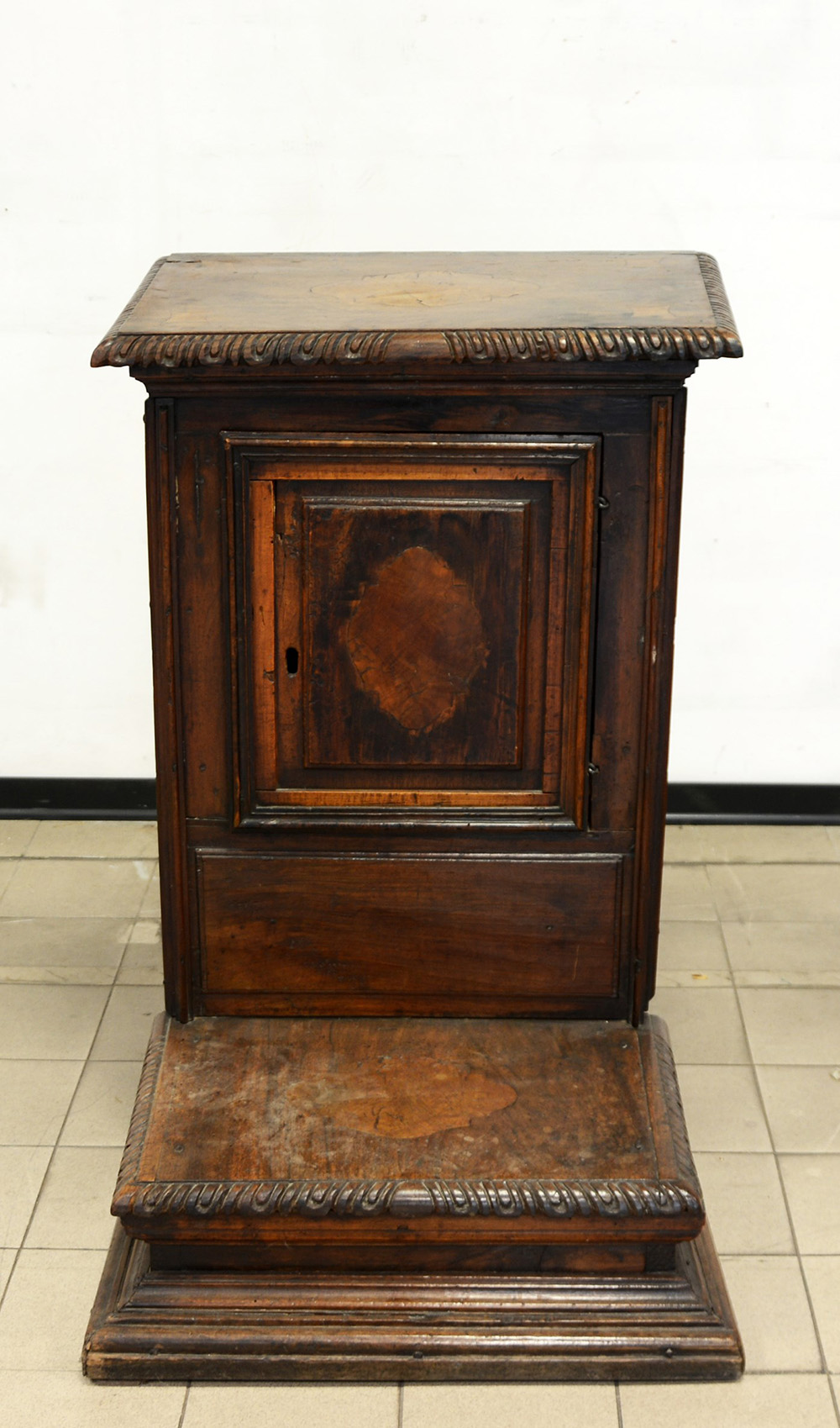 Lotto 863 | Antico inginocchiatoio con fronte, fianchi e coperchio intarsiati a motivi...