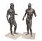 Coppia di sculture in bronzo raffiguranti i "Bronzi di Riace" (h cm 76) poggianti su basi in pietra (difetti)