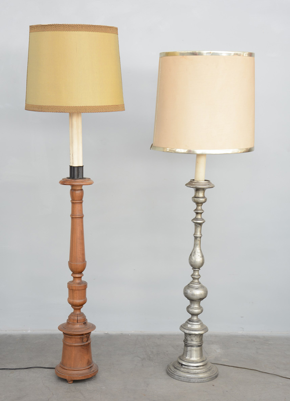 Lotto composto da due lampada da terra in legno e metallo (misure diverse) (difetti)
