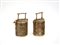 Manifattura orientale. Lotto composto da due contenitori da viaggio per riso in ceramica ed in bronzo (difetti)