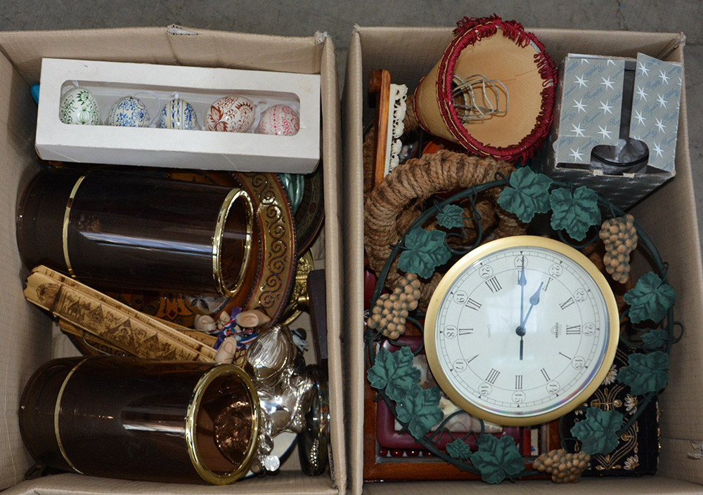 Lotto di due cartoni contenenti oggetti vari