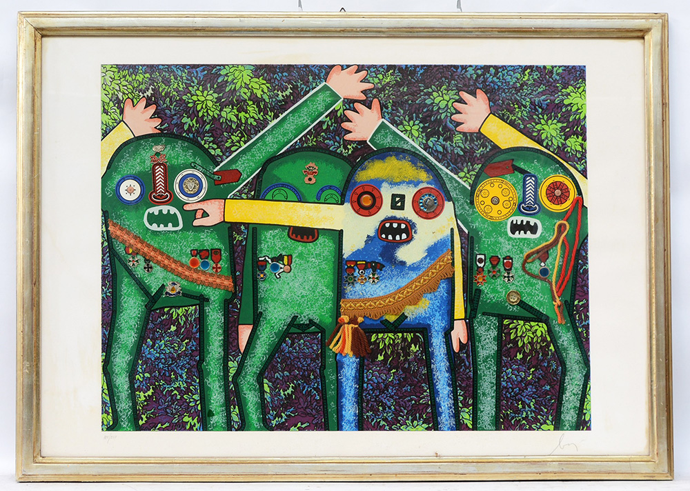Enrico Baj (Milano 1924 - Vergiate 2003) "Generali" multiplo materico (cm 70x100) numerato 185/250 e firmato in basso in lapis. In cornice