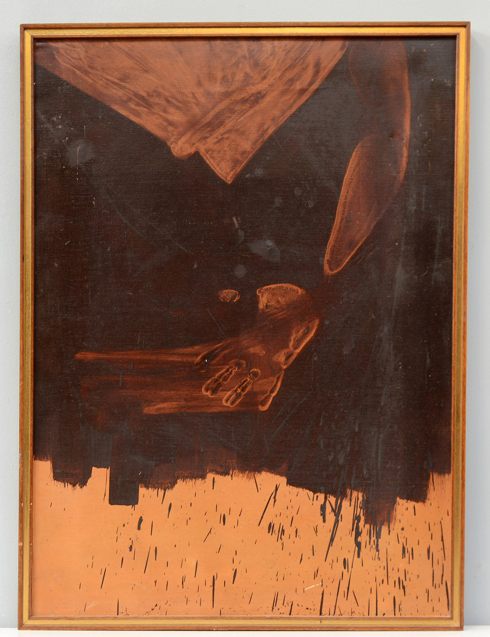 Antonio Recalcati (Bresso 1938) "Figura" 1961, olio su tela (cm 81x60) firmato, datato, titolato e inscritto al retro. In cornice (difetti). Parere verbale di autenticità rilasciato da Antonio Recalcati.