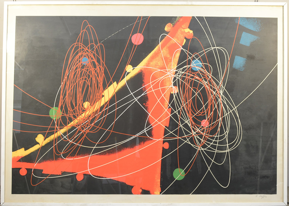 Roberto Crippa (Monza 1921 - Bresso 1972) "Senza titolo" serigrafia (cm 125 x 176) numerata in basso a sinistra II/XX e firmata in basso a destra. In cornice (lievi difetti)