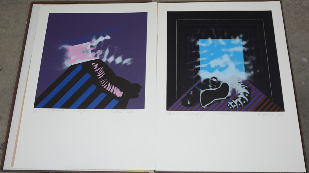 Andrej Ajdic, Branko Milju, Zvest Apollonio "AMS" 1972, cartella editoriale (cm 67x50) contenente 13 serigrafie policrome dei tre aristi sloveni, numerate 28/60, titolate, inscritte e firmate in basso in lapis. Ciascun autore è corredato da un testo introduttivo a cura di Aleksander Bassin. In cartella editoriale telata (lievi difetti)