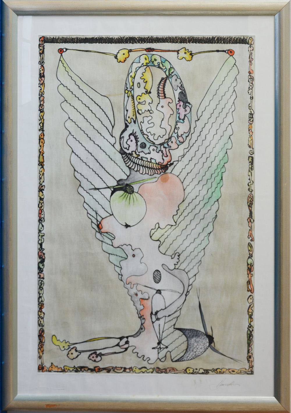 Vittorio Amadio "Senza titolo" acquaforte a colori (cm 100x70) firmato in basso a destra a matita. In cornice