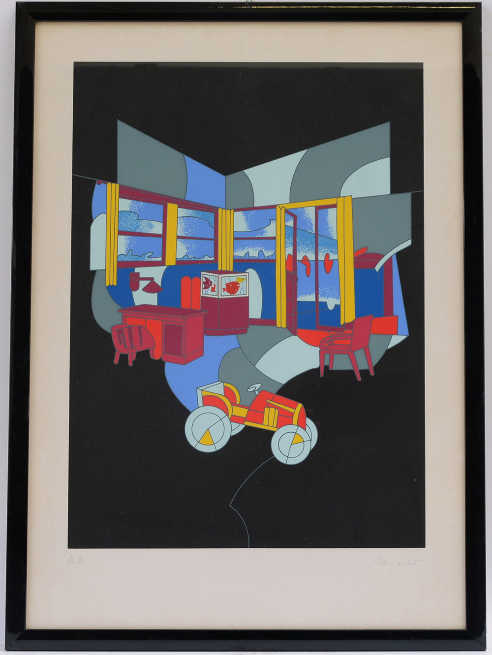 Ugo Nespolo (Mosso Santa Maria 1941) "Senza titolo" serigrafia – prova d'artista (cm 70x50) inscritta e firmata in basso in lapis. In cornice (lievi difetti)