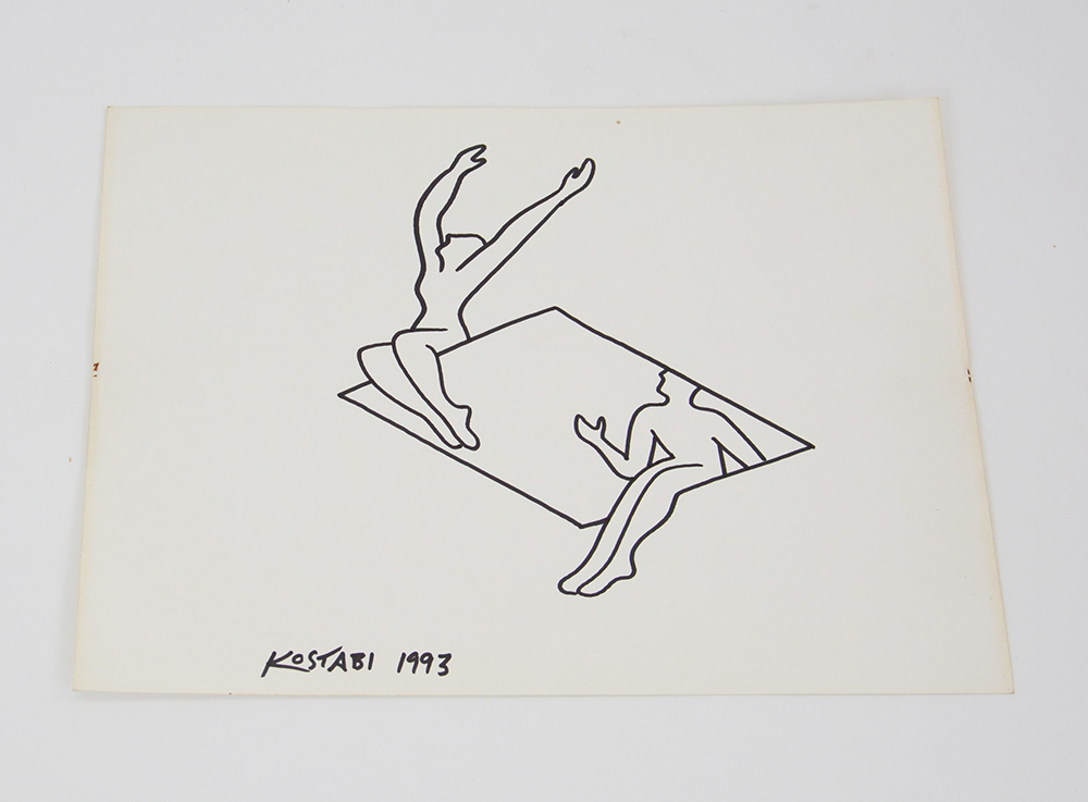 Kostabi Mark (Los Angeles 1960) "Wishful thinking", pennarello su carta (cm 22,8x30,5) firmato e datato 1993 in basso a sinistra, firmato titolato e datato al verso (lievi difetti)