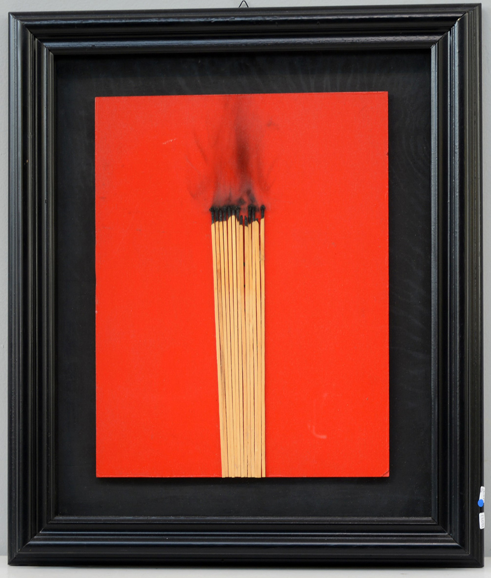 Bernard Aubertin (Fontenay aux Roses 1934 - Reutlingen 2015) "Senza titolo", 2010 collage di fiammiferi bruciati e acrilico su tavola (cm 40x30)firmato e datato al retro. In cornice