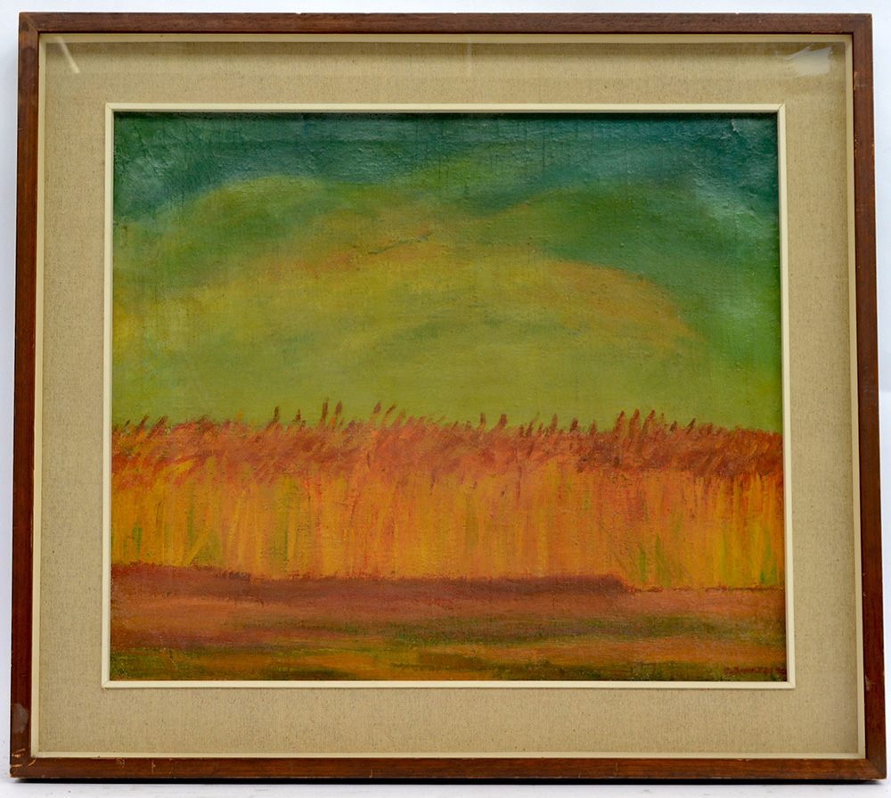 Umberto Ravazzi (Alessandria 1902 - Milano 1963) "Il grano" 1948. Olio su tela (cm 50x60) firmato e datato in basso a destra, firmato, titolato e datato al retro, in cornice (difetti)