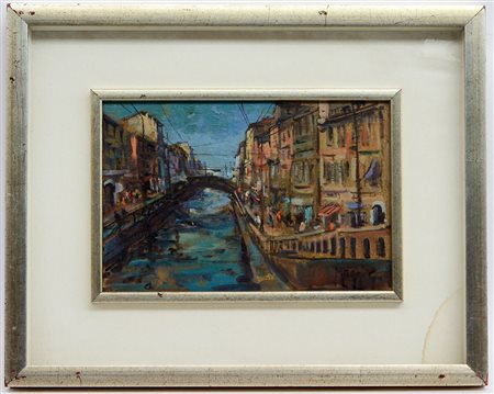 Giampietro Maggi (Milano 1934) "Milano, il Naviglio" olio su tela (cm 20x30)...