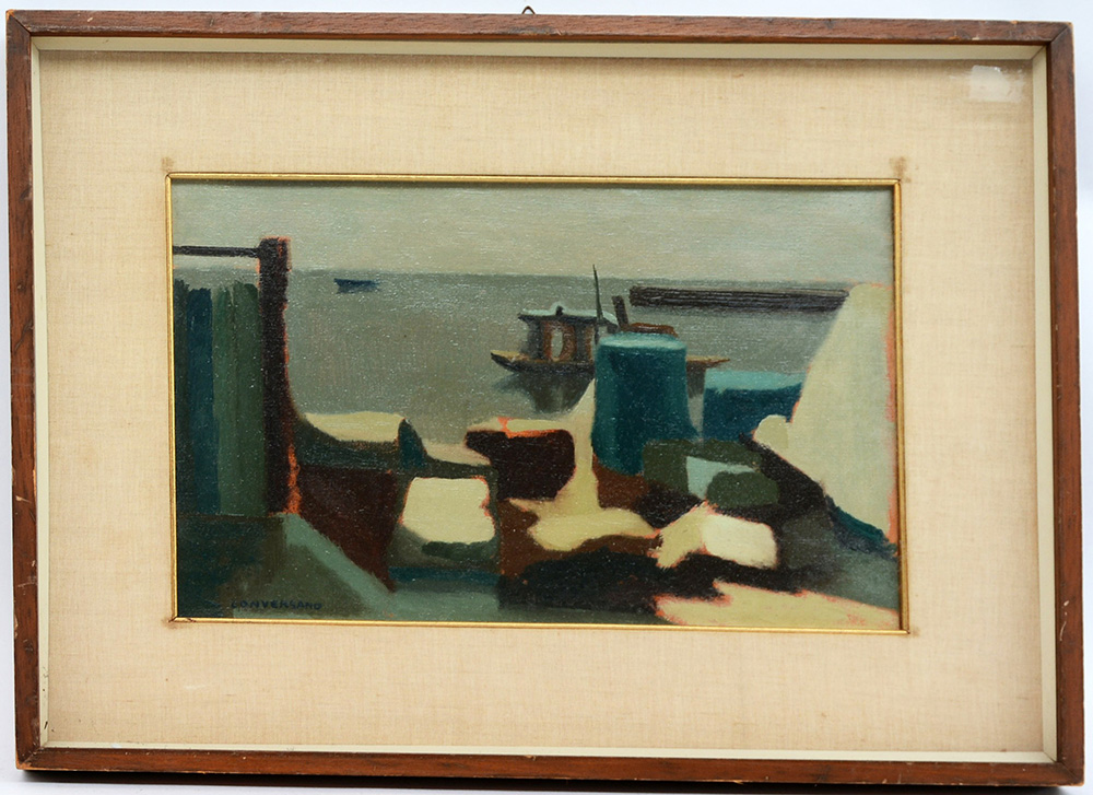 Romano Conversano (1920 - 2010) "Porto" olio su tela (cm 30x40) firmato in basso a destra, in cornice (difetti)
