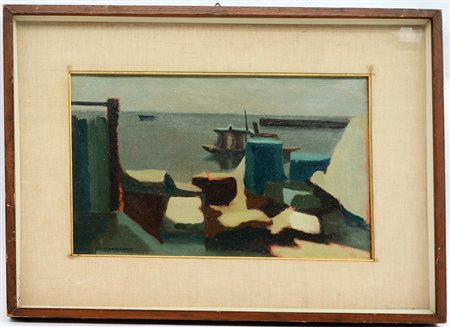 Romano Conversano (1920 - 2010) "Porto" olio su tela (cm 30x40) firmato in...