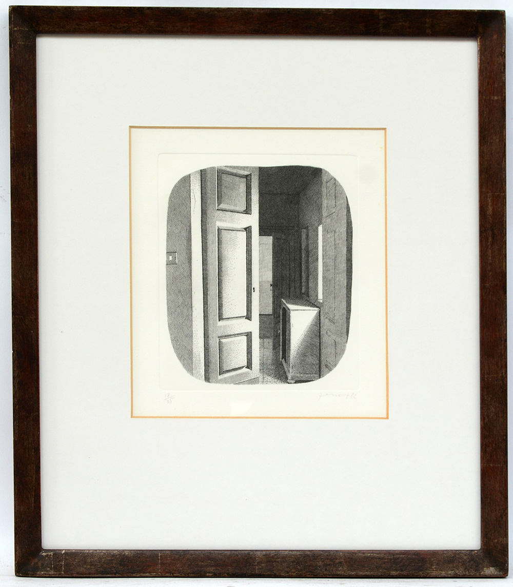 Gianfranco Ferroni "L'altra stanza 1982" acquaforte (cm 23x19) Firmata e numerata 18/35 in basso, in lapis. Provenienza Galleria Ceribelli, Bergamo, etichetta al retro