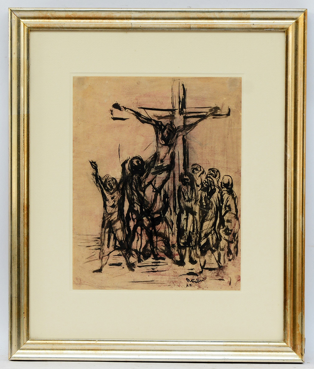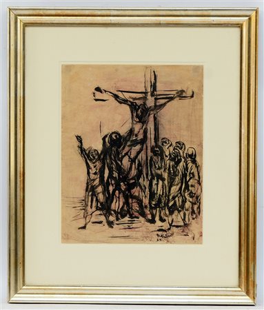 Firma indecifrata "Deposizione di Cristo" 1945 tecnica mista su carta (cm 28x21) Firmato e datato in basso a destra. In cornice (lievi difetti)