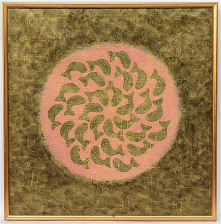 Firma indecifrata "Composizione" tecnica mista su tela. Firmata e inscritta...