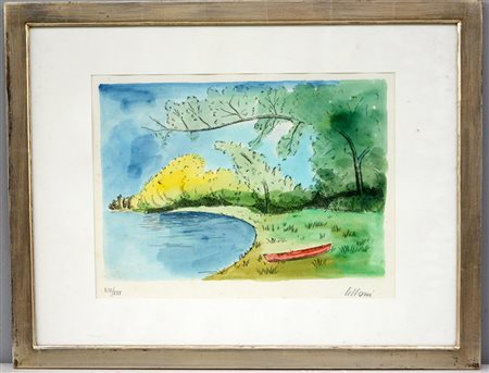 Umberto Lilloni (Milano 1898 - 1980) "Paesaggio fluviale" litografia (cm 34x45) Firmata e numerata 13/30 in basso in lapis. In cornice (lievi difetti)