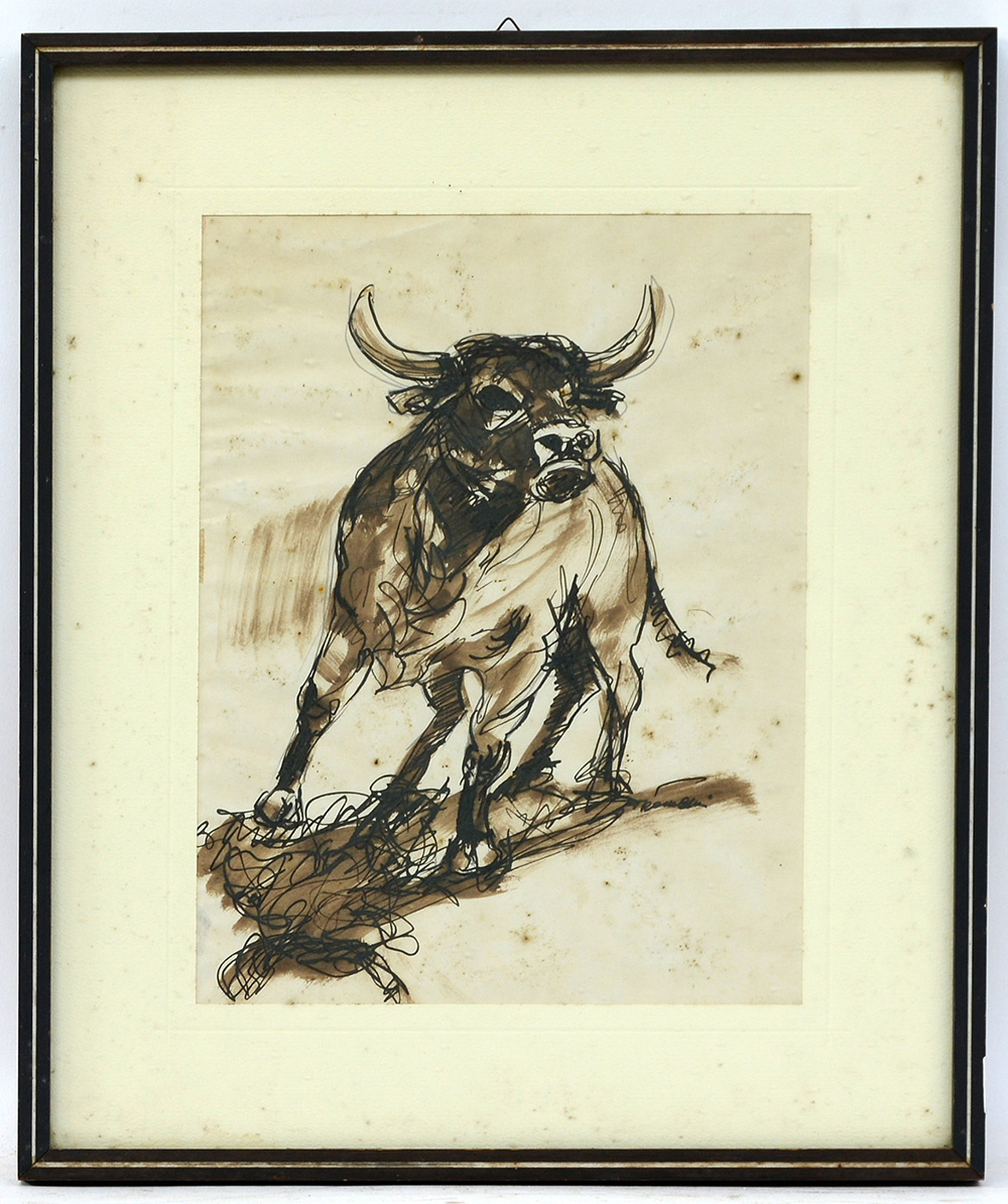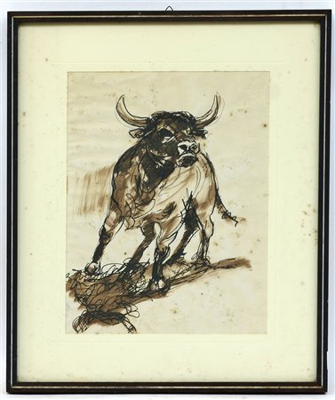 Firma indecifrata "Toro" china e acquerello su carta (cm 30x22) In cornice...