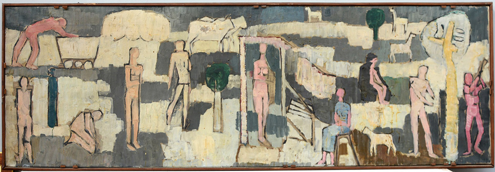 Ignoto "Figure" acrilico su tela (cm 50x160). In cornice (lievi difetti)