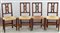 Gruppo di quattro sedie in noce con schienale squadrato e cartella intagliata...