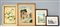 Lotto di sei quadri dipinti con tecniche differenti raffiguranti paesaggi e fiori, in cornici (difetti)
