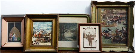 Lotto composto da 12 cornici diverse contenente riproduzioni e altro (difetti)