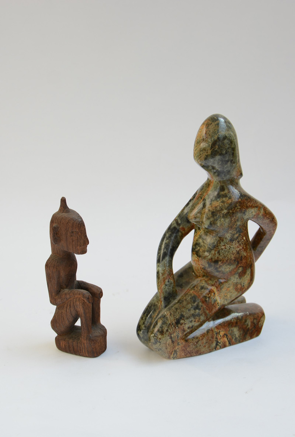 Lotto composto da una scultura di linea moderna in marmo ed una africana in legno raffiguranti figure (difetti)