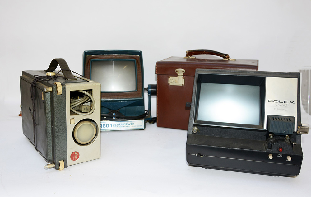 Lotto composto da due proiettori portatili per film e due monitor per il montaggio cinematografico (difetti)