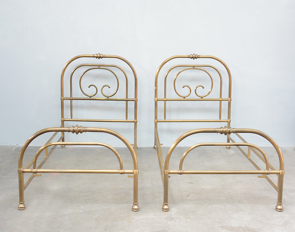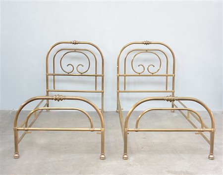 Coppia di letti singoli con struttura tubolare in ottone. Sec XX (lievi difetti)
