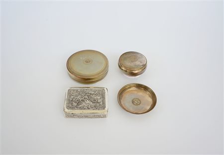 Lotto composto da quattro oggetti diversi in metallo e argento (gr 250 ca.)...