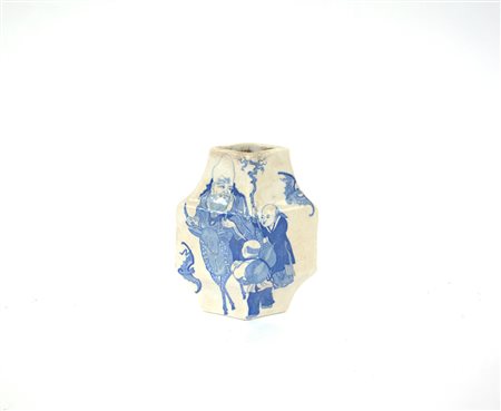 Vasetto di forma schiacciata decorata nei toni del blu (difetti) Cina, sec....