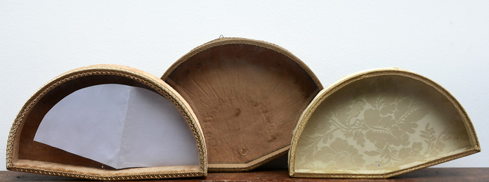 Lotto composto da tre teche per ventagli rivestite in tessuto.