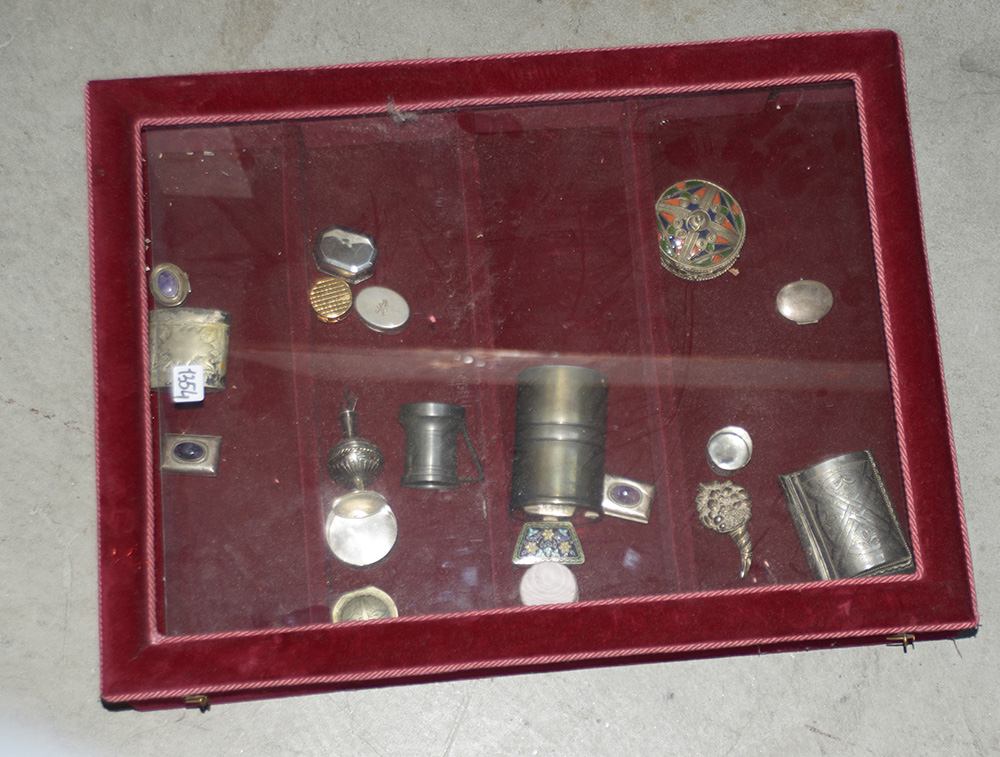 Teca contenente numerosi contenitori in materiali differenti (difetti)
