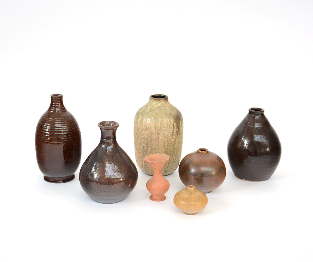 Lotto composto da sette vasetti in terracotta e ceramica invetriata di diversa misura e decoro (difetti)