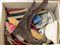 Cartone contenente numerosi oggetti decorativi realizzati con tessuti e...