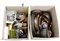 Lotto contenuto in due scatole contenenti numerosi oggetti in metallo, vetro...
