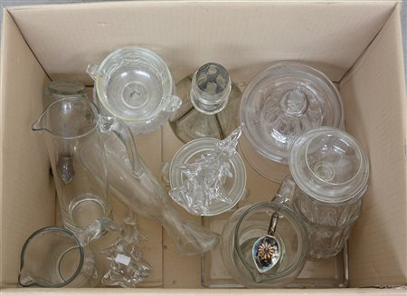 Cartone contenente numerosi oggetti per la tavola in vetro (difetti)