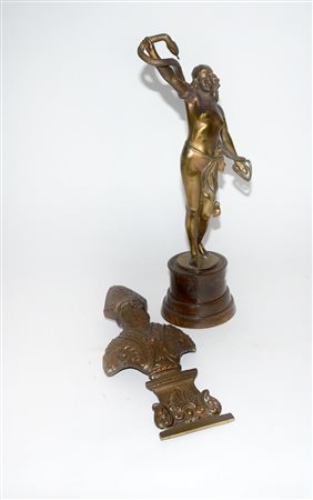 Lotto composto da una scultura in bronzo raffigurante Sant' Ambrogio ed una raffigurante odalisca (difetti)