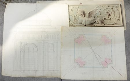 Cartelletta contenente numerosi disegni di carattere architettonico (difetti)