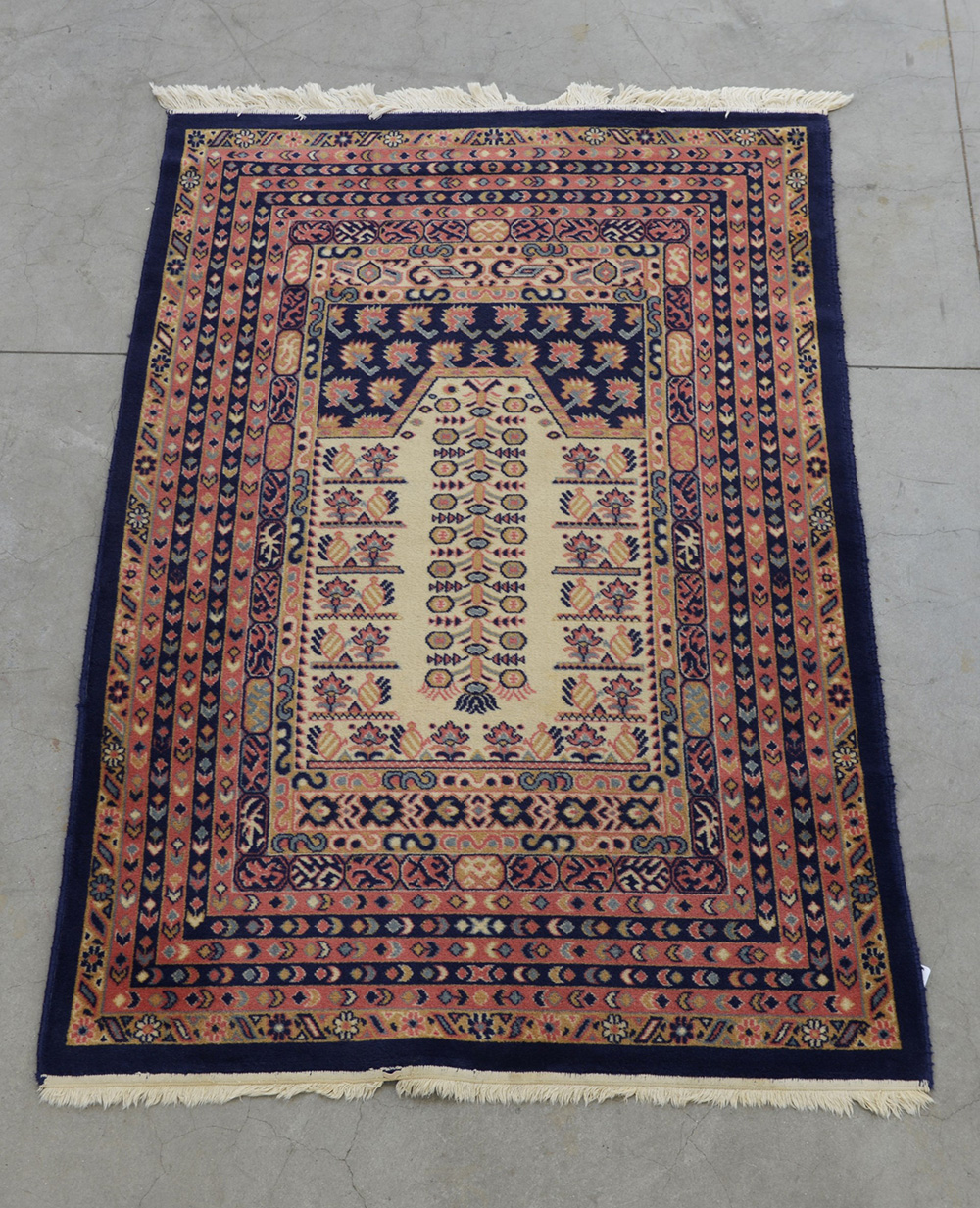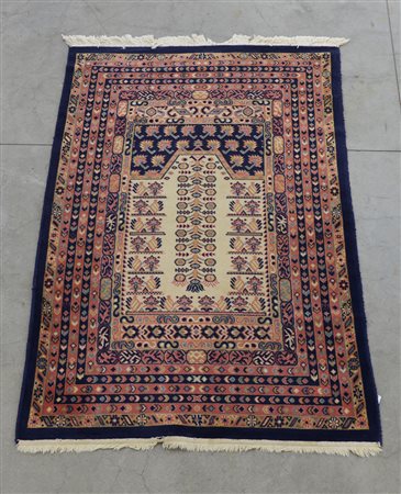 [Tappeti] Tappeto meccanico con disegno a preghiera nei toni del bianco, rosa e blu (cm 200x134)(difetti)