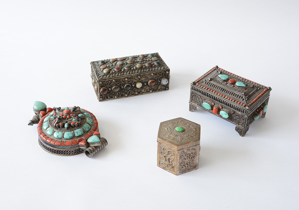 Lotto composto da quattro scatole in metallo e pietre preziose Manifattura asiatica, sec. XX (l. max 15 cm.)