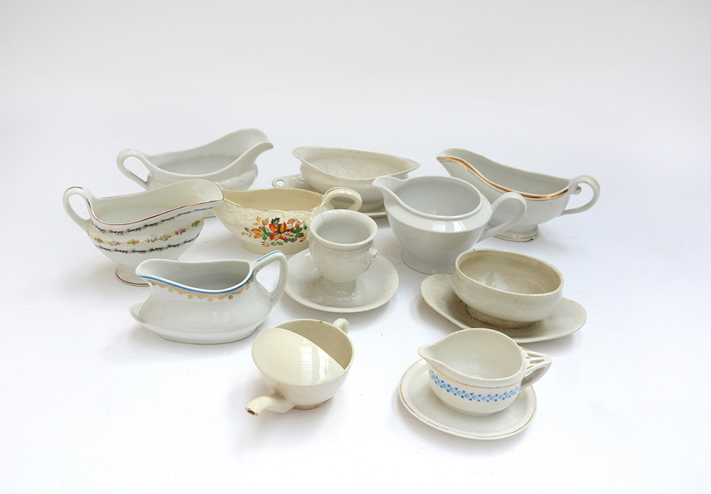 Lotto composto da undici salsiere di forme, decori e manifatture differenti (difetti)
