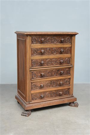 Settimanale con un anta e tre cassetti intagliati a volute (cm...