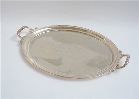 Vassoio biansato in metallo argentato (cm 68x46)