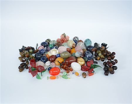 Lotto composto da numerose uova e frutti in pietra dura (difetti)