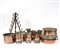 Lotto composto da un trespolo in ferro battuto, cinque boccali e cinque...