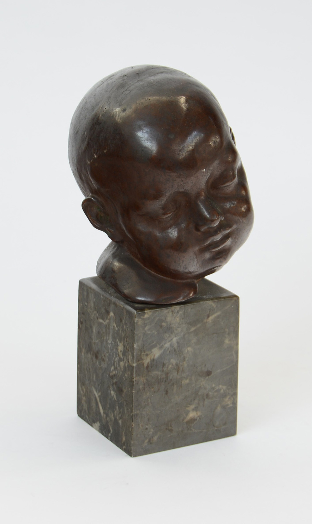 Ignoto "Testa di bimbo" scultura in bronzo (h cm 15) Poggiante su base in marmo