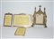 Lotto composto da una cornicetta neogotica e tre cartagloria in ottone (difetti)